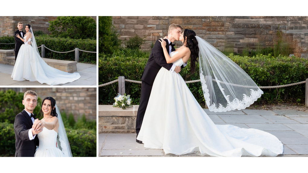 Wedding portraits at The Watermill in Smithtown were nothing short of magical. Shyanne’s cathedral veil caught the wind beautifully, her gown from The Bridal Salon of Huntington felt timeless and refined, and the gardens provided a romantic backdrop for their Long Island wedding photography. With makeup by Genie Artistry and hair by The Beauty Lounge, every detail came together effortlessly.