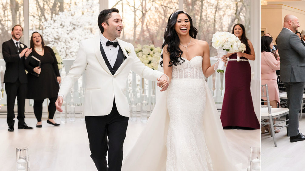 They were married at their church in Lynbrook, surrounded by family and friends who have been part of their journey for years. The celebration continued at Gatsby by the Ocean at Jones Beach, where the evening unfolded into an elegant, high-energy reception. Lush floral designs by The Showplace NY elevated the space beautifully, while transportation by All Star Limo kept the day seamless from
